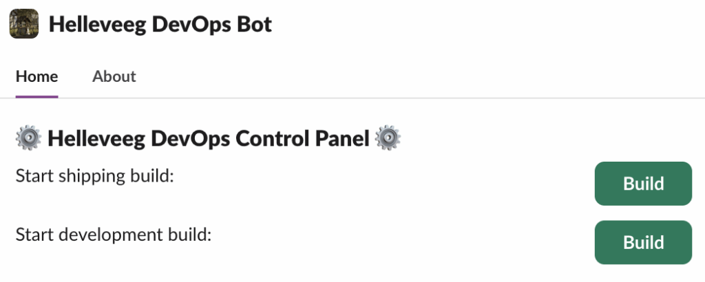 • Het team kan via de Slack bot ook zelf overdag builds aanvragen.